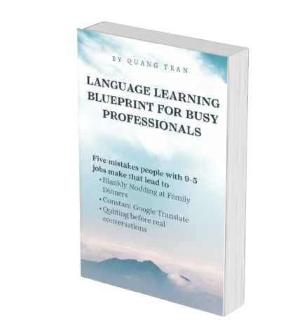 A FREE 5-Day email course breaking down five mistakes people with 9-5 jobs make that leads to Blankly Nodding at Family Dinners, Opening Constant Google Translate, And Quitting Before Real Conversations (Even with a 400-day Duolingo streak).